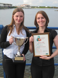 Ellen and Gemma Howard with the North West in Bloom Biodiversity Award for the Chorley Bat House.