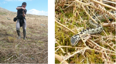 Bowland Ecology staff have been brushing up their reptile survey skills by monitoring a local reptile hotspot in the Forest of Bowland AONB. The monitoring site is ideal for lunchtime trips to see adders emerging from hibernation and basking in the shelter of bracken. Common lizard and slow worm have also been seen at the site. Accurate field identification skills are essential for delivering professional ecological work; we’re fortunate in being able to practice our id skills in the local area! A recently sloughed adder with distinctive head markings was photographed in Bowland on 12.4.10: